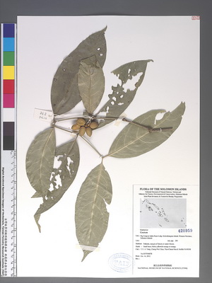 | Field Number: SITW00878 Catalog Number: SITW00878-TAIF-001 Family Name: Gnetaceae, Gymnosperm Collector(s): T.-Y. Aleck YANG, Cheng-Wei CHEN, Tian-Chuan HSU & Moffat FANARII FANERII Determinated by: T.Y.A. Yang & C.F. Chen Collected Date: 16 October 2012 Locality: Pig Camp to Imbu Rano Lodg, Kolombangara Island, Western Province GPS Coordinates: (8° 1' 4.4" S, 157° 6' 46.3" E) Altitude (m): 595 Habit: Small trees; fruits yellowish-orange to orange Habitat: Pathside, margin of forests or under forests Herbarium: TAIF |
